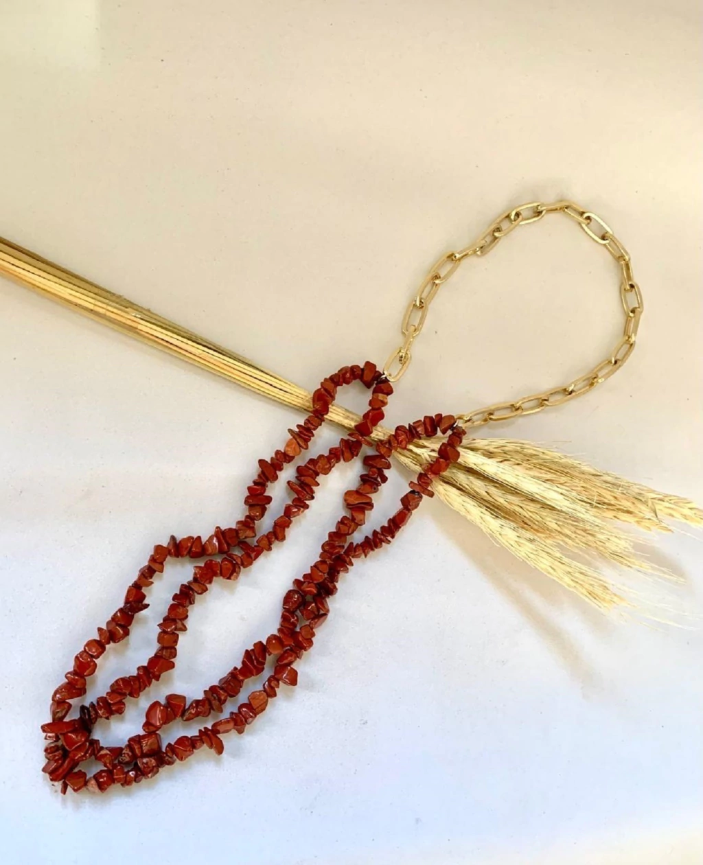 ✨ A pedra cascalho jaspe vermelho é conhecida por suas propriedades energéticas, promovendo coragem e proteção. Perfeito para quem busca um acessório que não só complemente o visual, mas também traga boas vibrações!