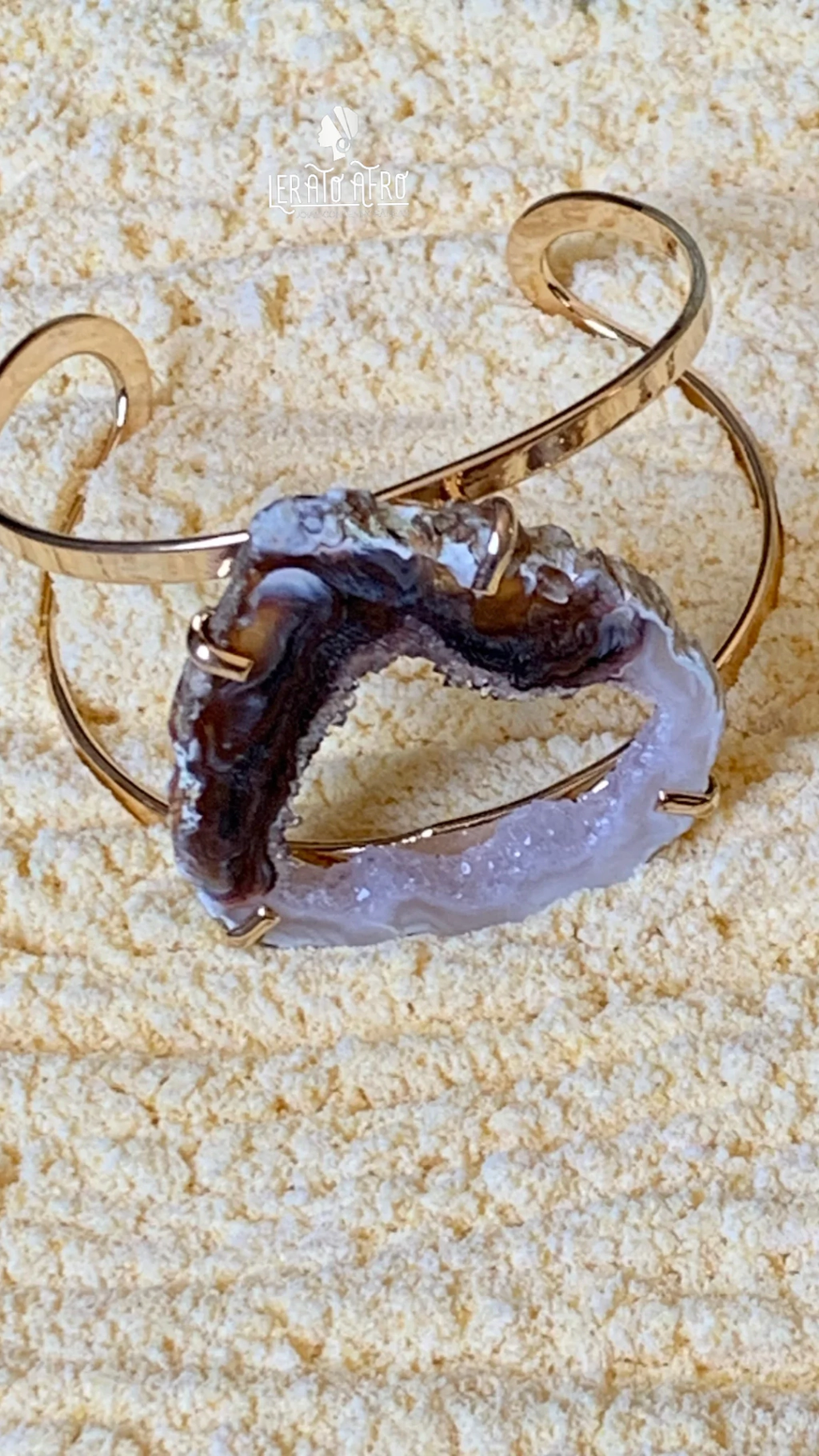 ✨Bracelete Regulável em Agata Geodo Bege