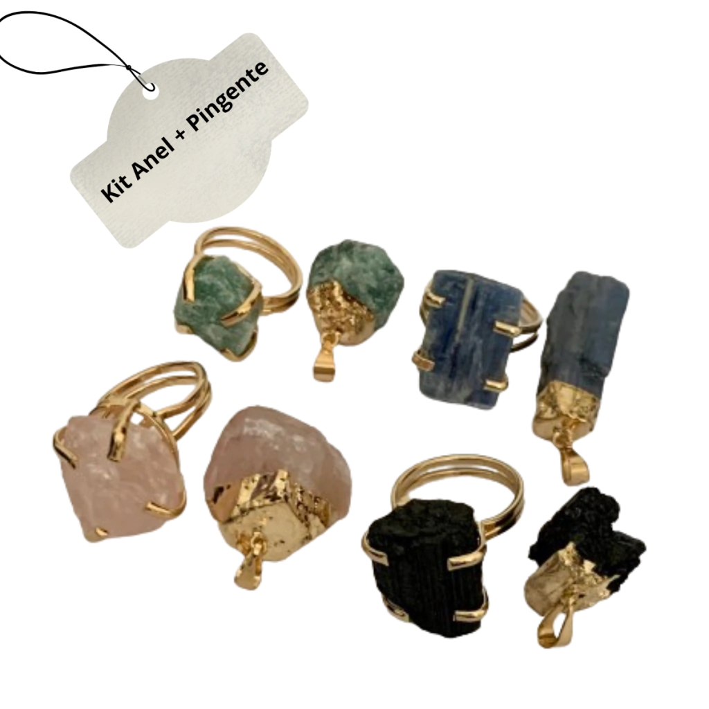 ✨Anel Dourado - Pingentes - Acessórios - Pedra Bruta Quartzo Rosa / Quartzo Verde / Cianita Azul / Turmalina Negra Por se tratar de pedra natural, pode haver uma pequena variação na tonalidade e formato das pedras.Altura média da Pedra: 2,0 cmLargura média da Pedra: 1,0cmMaterial do metal do pingente: Estanho com banho de dourado