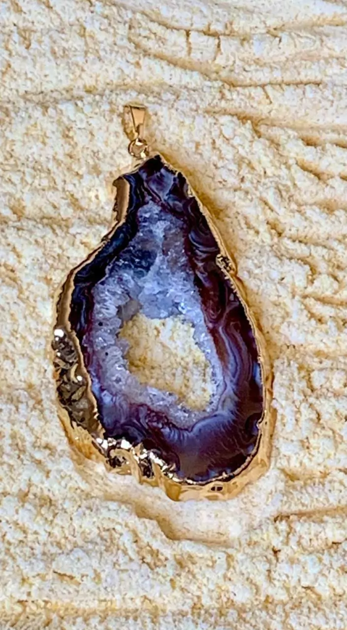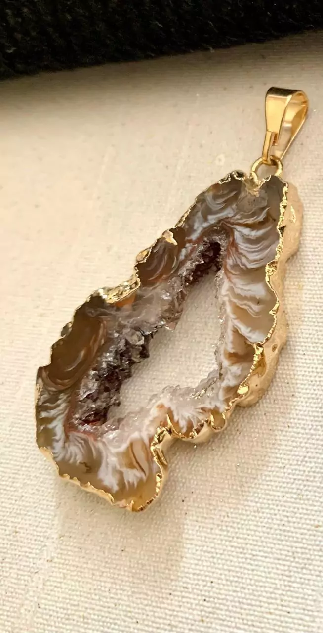 ✨Pingente Geodo Chapa de Ágata Dourado